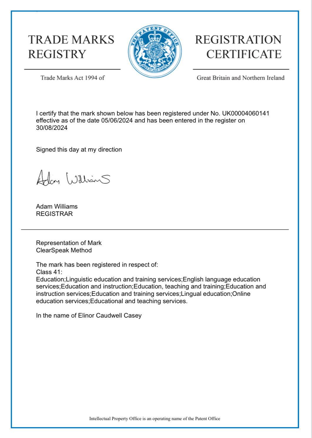 I’m so confident in my teaching methods that in 2024 I trademarked my course with the UK government. This means no one else can use my methods.
